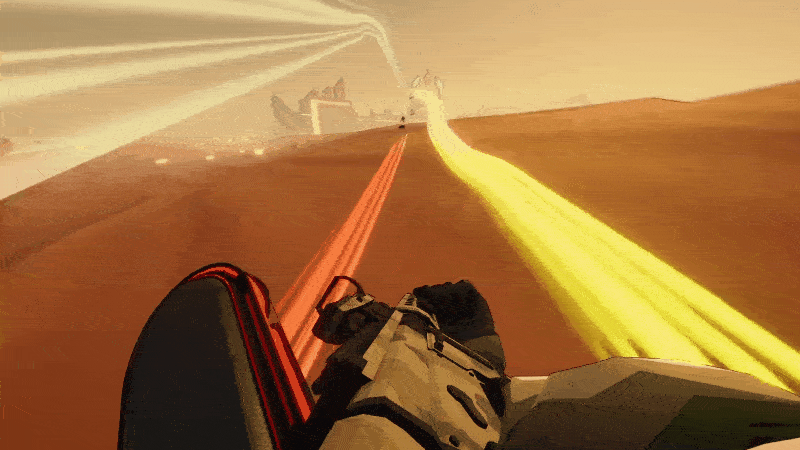 Es una combinación extraña. Condenar-como acción FPS con vistas alienígenas vacías y solitarias, pero funciona muy bien en Punto de eco Nova— especialmente porque explorar estos lugares se hace a 200 MPH mientras se viaja en una linda patineta voladora.
