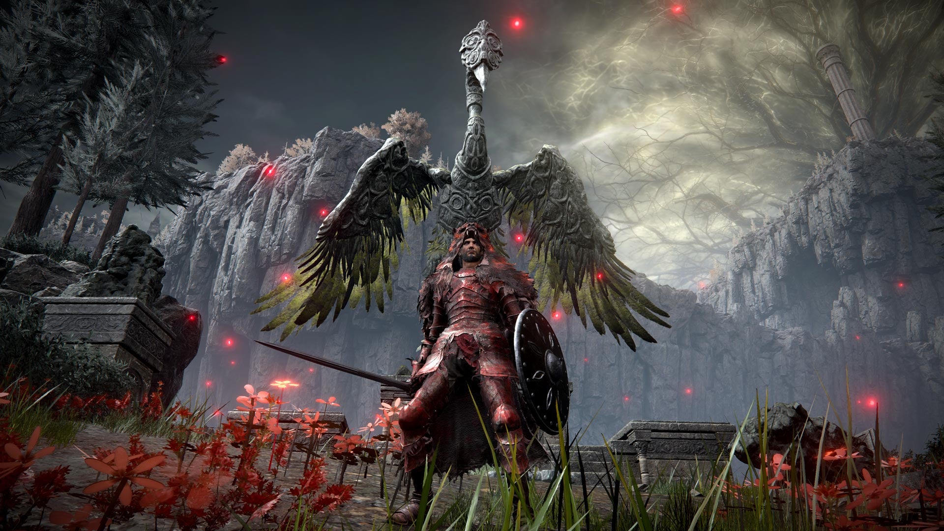 Derrota a los enemigos cerca de la estatua del pájaro, luego acércate y reclama los anillos de hechicería de luz espectral que se encuentran directamente debajo de ella.