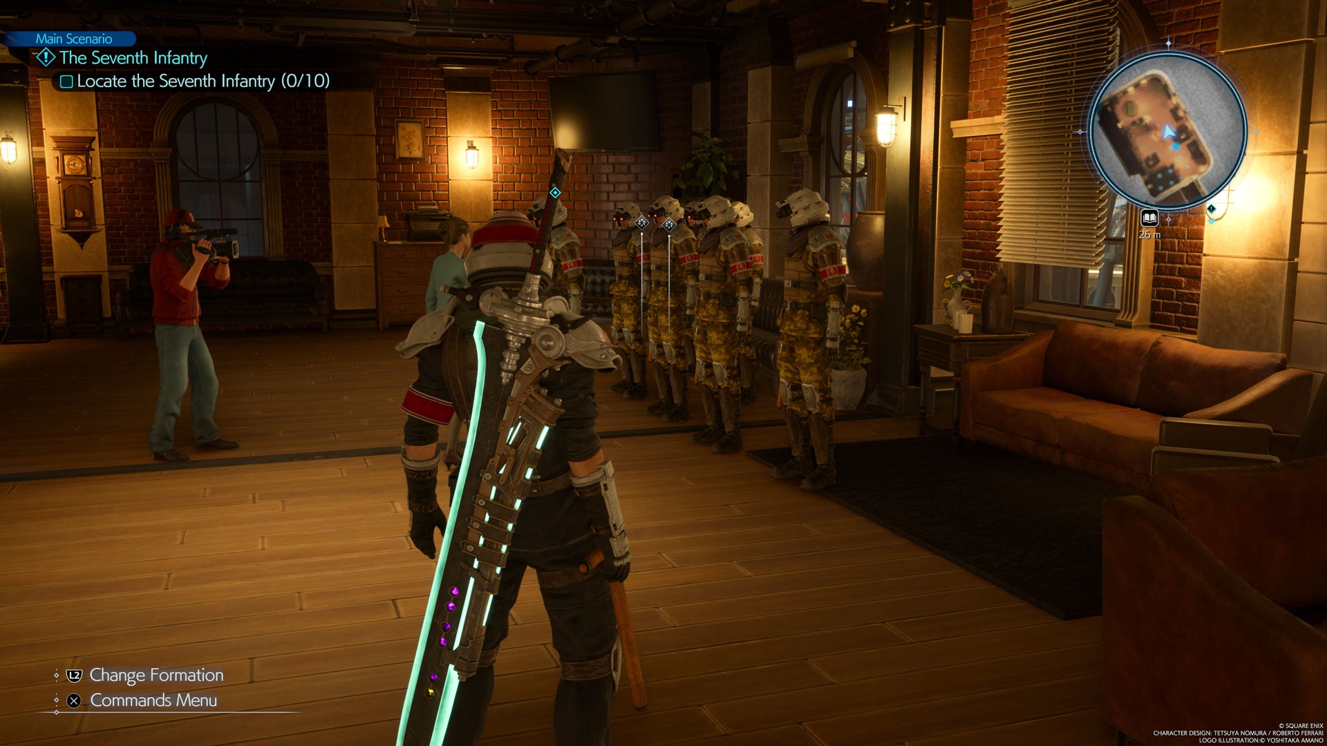 Dirígete al cuartel y sube al último piso. Encontrarás un grupo de soldados dando una entrevista a un reportero de televisión. . Habla con ellos y ellos se acompañarán.