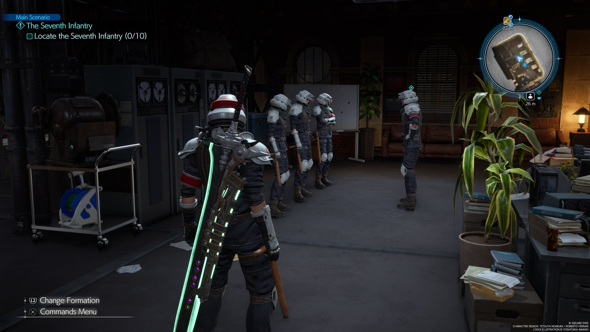 Dirígete al último piso del cuartel y encontrarás otro grupo de soldados que se unirán a ti después de una breve charla.