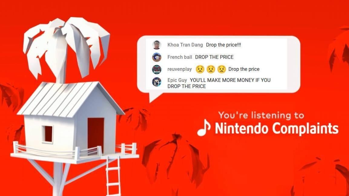 La transmisión en vivo de Nintendo Treehouse es un muro de texto con mensajes que dicen “baja el precio”