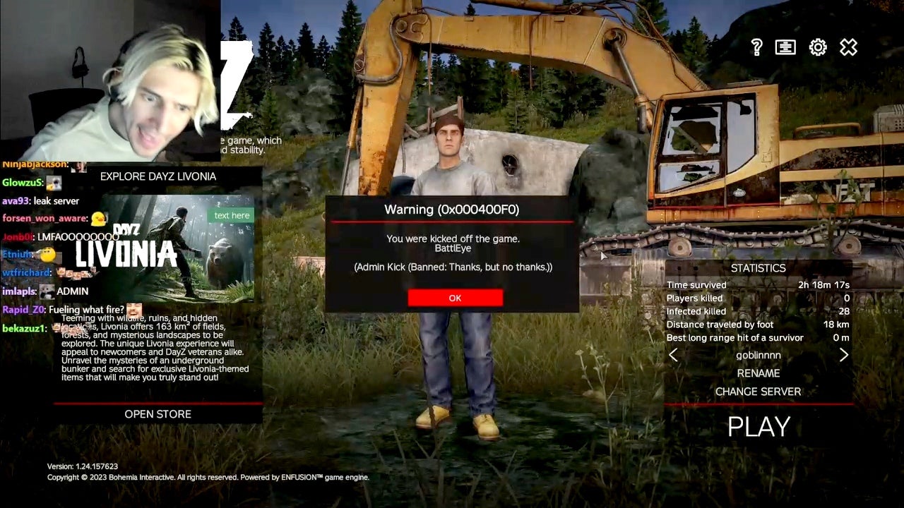 El controvertido transmisor de Kick recibió un mensaje en el servidor DayOne Chernarus que decía: “Gracias, pero no, gracias”.