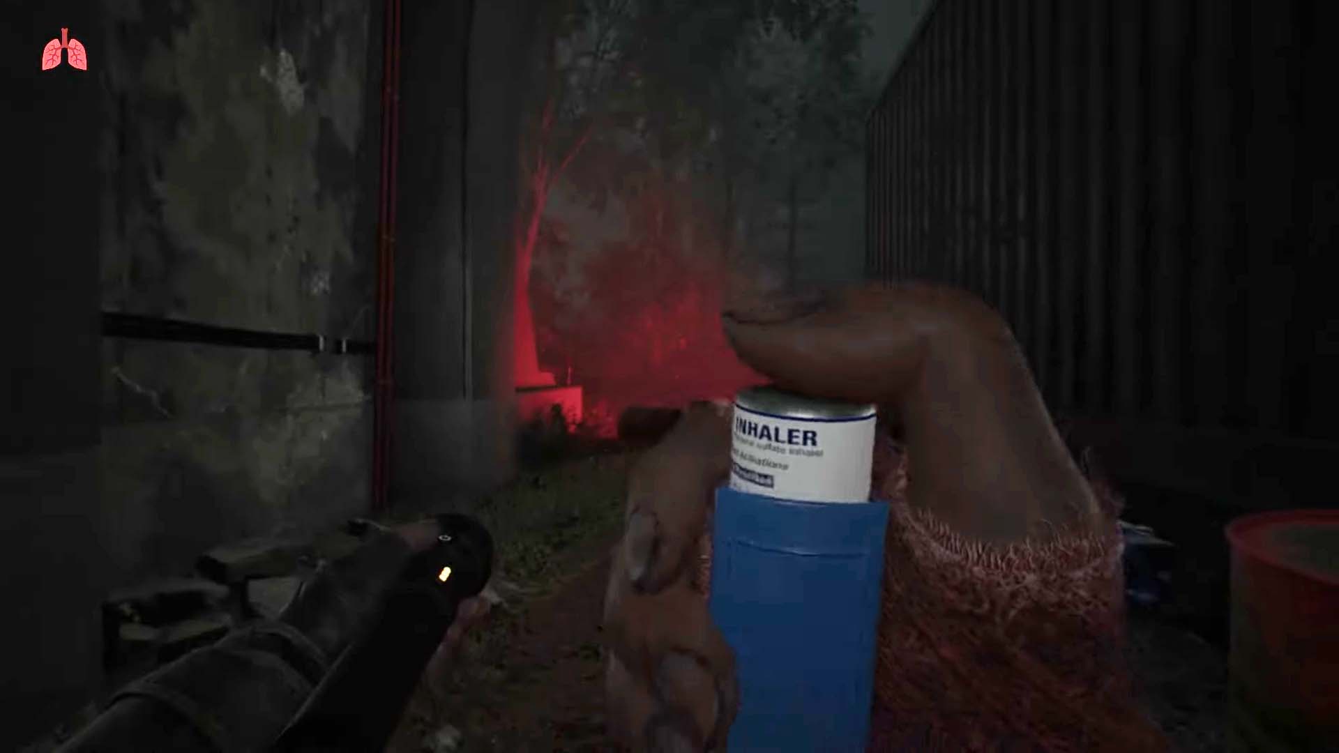 El asma de Alex juega un papel importante en el juego y reemplaza a una barra de salud tradicional. Porque los monstruos en Un lugar tranquilo Son increíblemente letales y te matan instantáneamente por ser demasiado ruidosos, los desarrolladores no podían usar un medidor de salud tradicional como en Residente malvado o Colina silenciosaEn cambio, tienes que controlar tu estrés y tu asma. Correr demasiado o cargar objetos pesados durante demasiado tiempo comenzará a tensar tus pulmones, al igual que acercarse demasiado a los monstruos, lo que hace que Alex se estrese.